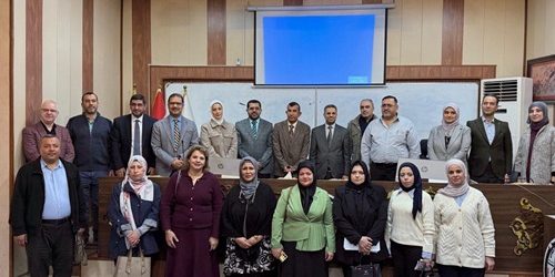 محاضرة علمية مصورة في جامعة بغداد لتدريب الملاكات التدريسية على تحليل نتائج الامتحانات النهائية