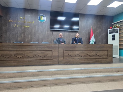 اذ قدم مدير المركز الوطني للبيانات المكانية د. زيد فرهود مكي عرضاً تضمن طبيعة عمل المركز مع وزارات الدولة العراقية فضلا عن فتح افاق التعاون من خلال التدريب والدعم للطلبة والباحثين في الكليات والمراكز المعنية بموضوع نظم المعلومات الجغرافية (GIS) من خلال التدريب وتوفير البيانات مايحقق افاقاً من التعاون ودقة المعلومات والخرائط بما يخدم البحث العلمي.